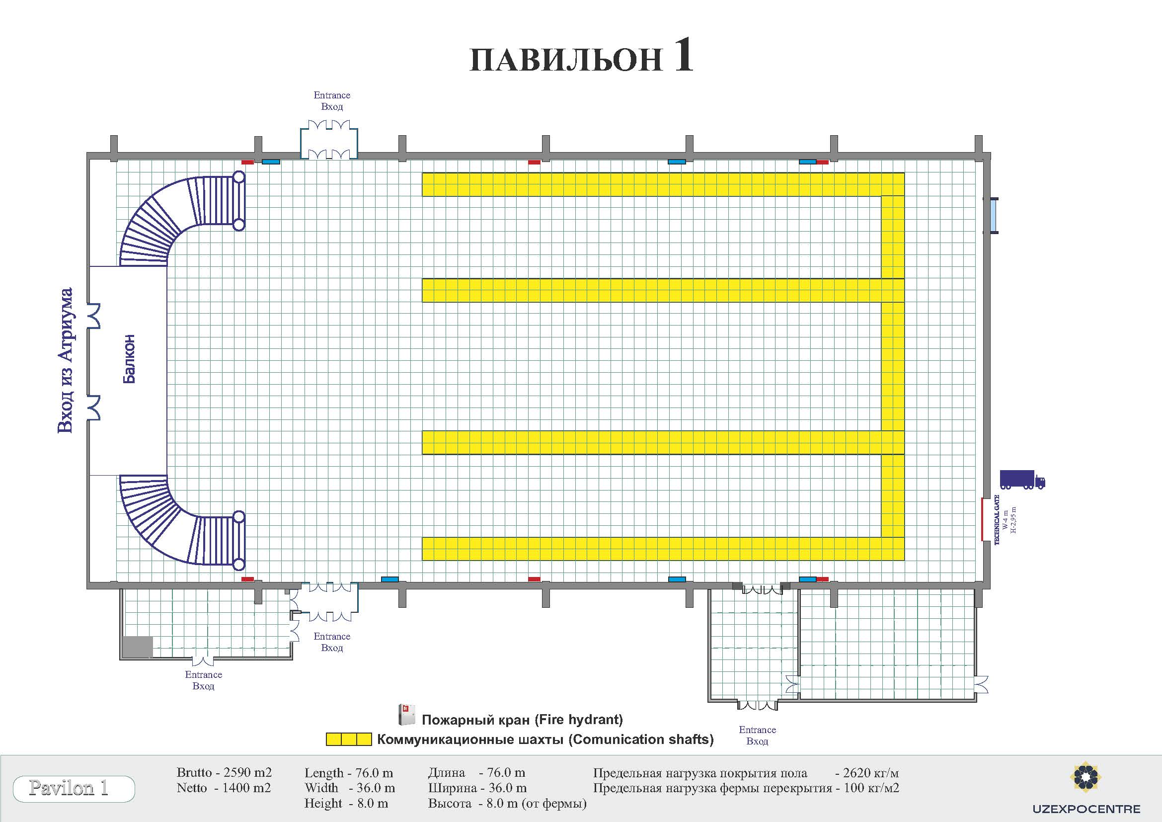 - Павильон №1 – 2590 кв.м